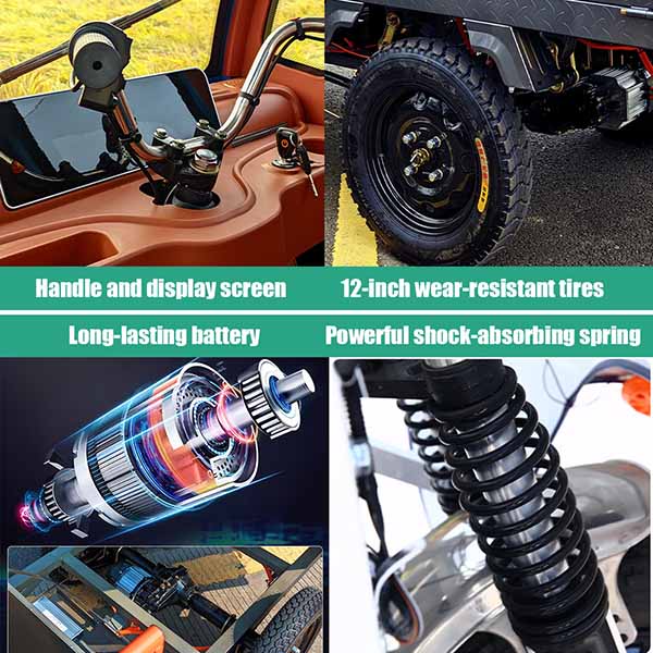Overall Dimension[mm) 3080*1150*1450 Front/Rear wheels Front 4.00-12 Rear 145/70R-12